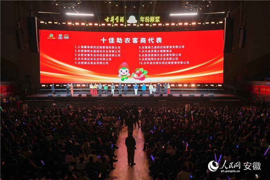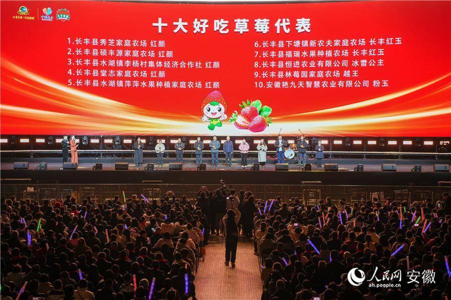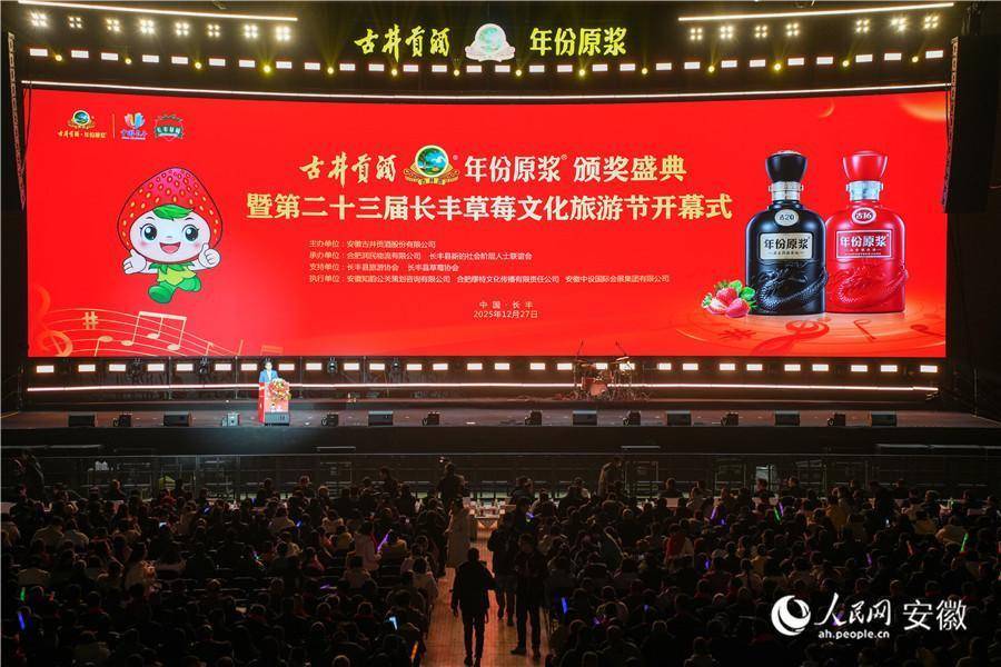 第二十三届长丰草莓文化旅游节甜蜜启幕。人民网记者 王锐摄人民网合肥12月28日电 12月27日,古井贡酒·年份原浆颁奖盛典暨第二十三届长丰草莓文化旅游节在合肥市长丰县体育馆甜蜜启幕。这场集草莓推介、音乐盛宴、非遗展示、文艺演出、农产品展销与汽车展览于一体的文旅嘉年华,让大家共享一场“有果甜、有乐动、有酒香”的冬日之旅。